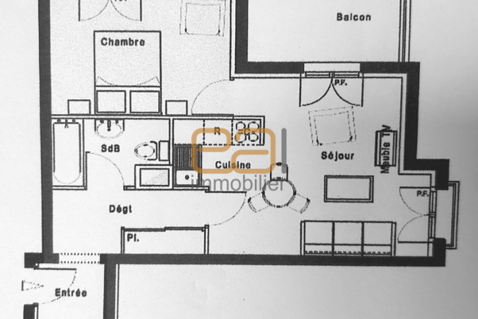 Le bien se compose d'une entrée de type couloir qui donne accès à la pièce de vie comprenant un séjour et une cuisine ouverte, aménagée et équipée, à une chambre indépendante et à la salle d’eau avec WC. Nombreux rangements. Vous bénéficiez d'un extérieur grâce à un balcon de 5m² environ. Une place de parking sécurisée complète le tout.