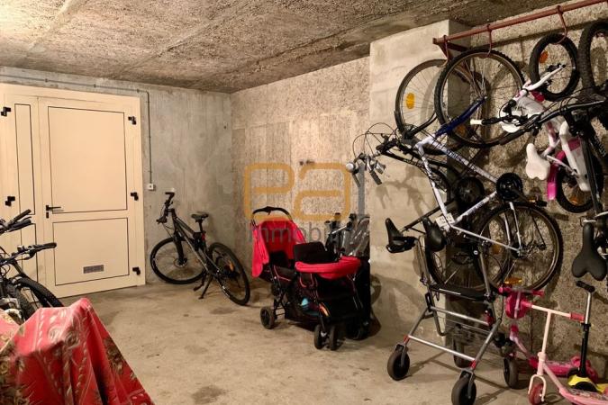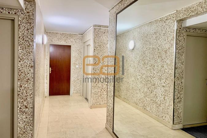 L’appartement se compose d’une vaste entrée dotée de deux grandes penderies, qui dessert une pièce de vie avec cuisine américaine aménagée de 26m², deux chambres de respectivement 10,5 et 9m², une salle d’eau et un WC indépendant. Une cave de 3m², l’accès au local à vélos/poussettes et une place de stationnement privative complètent le tout.