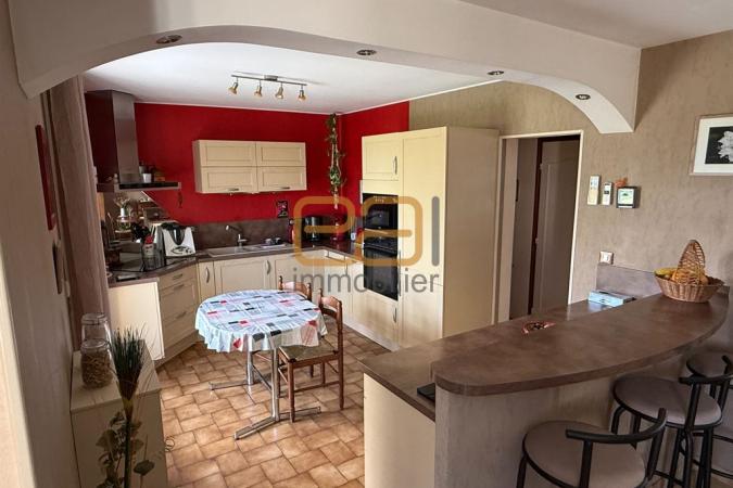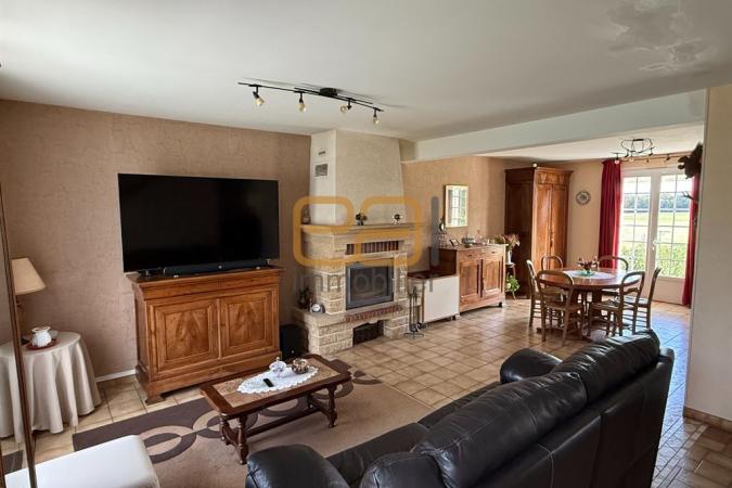 Cette maison sur sous-sol est composée au rez-de-chaussée d’un vaste séjour-cuisine climatisé, lumineux, avec un insert bois. Deux chambres, une salle d’eau et un WC indépendant complètent ce niveau. Le séjour-cuisine s’ouvre sur une belle terrasse récente et carrelée, avec vue sur la campagne.