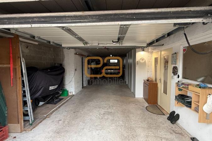 Un grand sous-sol avec porte motorisée, accueille deux voitures, un atelier, une pièce annexe et une partie laverie.