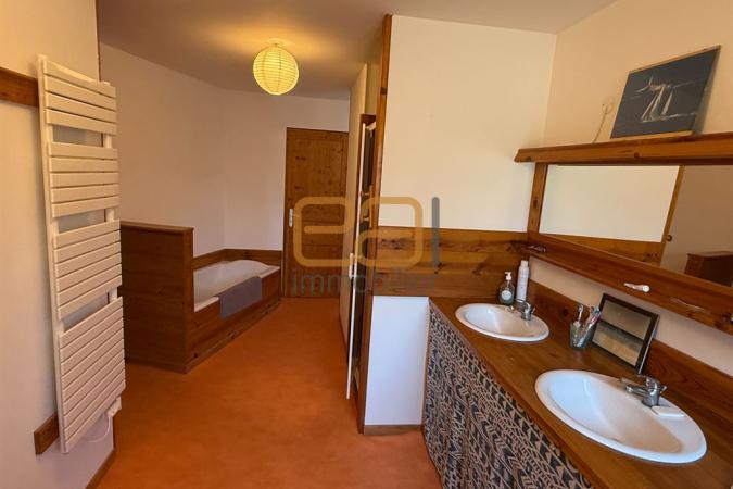 La maison comporte une vaste entrée qui distribue la pièce de vie avec cuisine, salon/salle à manger lumineux. Le salon est agrémenté d’une cheminée et d’un poêle à granules qui chauffe toute la maison. Une grande salle de bains, une salle d’eau, ainsi que 4 chambres complètent ce bien.