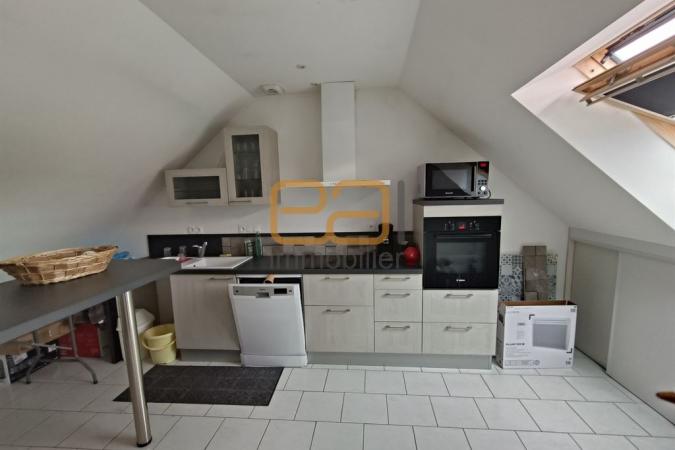 Le premier étage comprend une chambre ainsi qu'une pièce de vie et une cuisine.