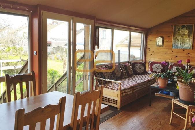 Au rez-de-chaussée une entrée distribue un garage, un cellier – lingerie, une salle de bain. Le 1er étage se compose d'une cuisine équipée de 10 m², d'un salon avec cheminée et parquet, de 2 chambres, d'un WC séparé et d'une véranda avec vue sur terrain. Au second, un palier dessert 2 autres chambres avec placard, dont une avec son coin cabinet de toilette. Le chauffage est au gaz de ville, les huisseries sont en double vitrage PVC. Un terrain d’agrément de 423m² avec un chalet en bois complète l'ensemble .