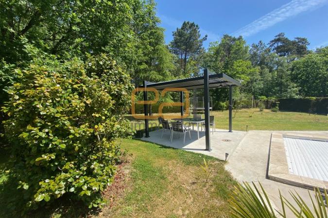 Profitez du jardin boisé et de la piscine neuve (réalisation en 2022) de 9x4 mètres avec volet roulant motorisé pour votre sécurité.
