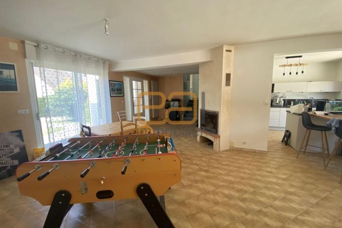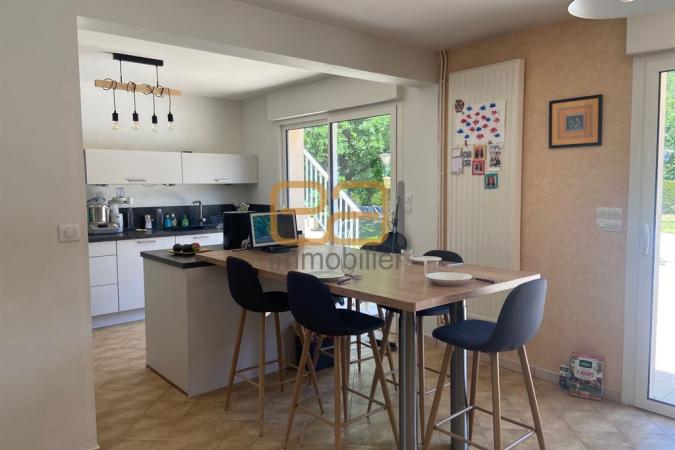 Dans la commune de MULSANNE, à 10 minutes du Mans sud, A VENDRE, une MAISON D'ARCHITECTE offrant de plain-pied une entrée avec sas, un vaste volume avec cuisine neuve entièrement aménagée et équipée d'environ 25m² avec son îlot pour des repas en famille, une salle à manger attenante de 26m² environ et un grand espace salon d'environ 46m² (luminosité traversante avec de part et d'autre de grandes baies coulissantes), une cheminée avec insert complète cet espace.