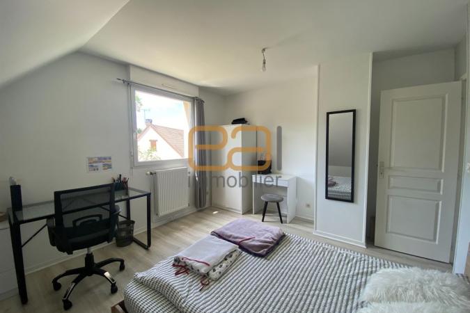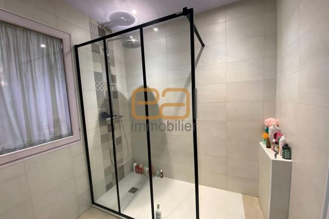 En demi niveau, vous découvrez l'espace chambre parentale avec espace dressing donnant sur le jardin arboré, une salle d'eau avec douche italienne refaite à neuf en 2020, des toilettes séparées et un bureau.