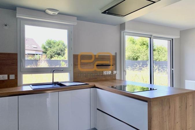 La maison d’habitation lumineuse orientée Nord-Ouest, offre une grande pièce de vie de 40m² environ comprenant un séjour et une cuisine américaine avec îlot dinatoire, totalement aménagée et équipée (four micro-ondes, four, plaque de cuisson à induction, lave-vaisselle, réfrigérateur et hotte aspirante télécommandée). La partie nuit se compose de 3 chambres de respectivement 10,70 / 10,60 et 10,00m², d’une salle d’eau avec douche, meuble double-vasque et WC, ainsi que d’un WC indépendant supplémentaire. Un garage de 18,50m² avec porte motorisée et une buanderie complètent la partie logement. L’extérieur, clos et paysagé, offre un bel espace pelouse. Une zone de stationnement devant la maison, dans l’enceinte de la propriété, complète l’ensemble.
