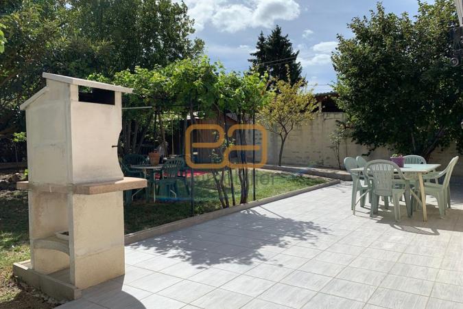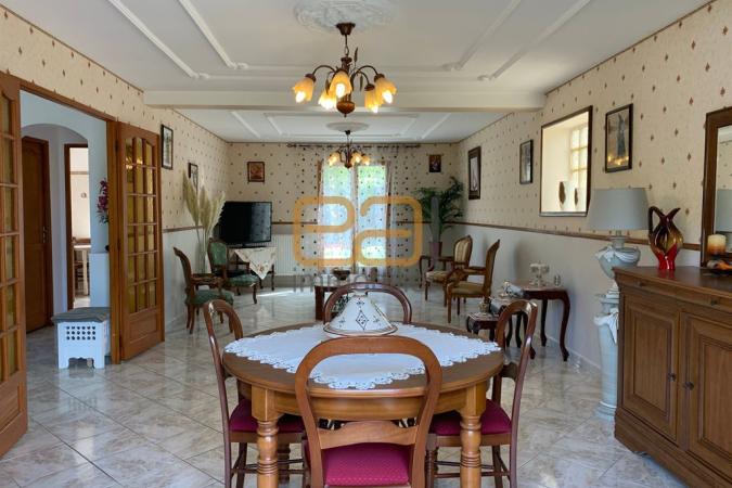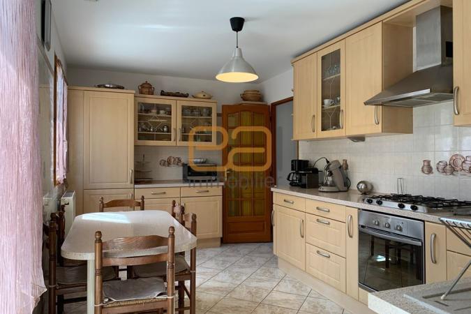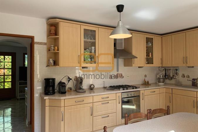 Grande terrasse très bien exposée avec barbecue, spacieux garage, cuisine toute équipée, également cuisine d'été, double séjour avec terrasse sur le devant, w.c avec lave main, placards. A l'étage, quatre chambres (17/15/12/12m²), un w.c, un dressing, une salle d'eau.