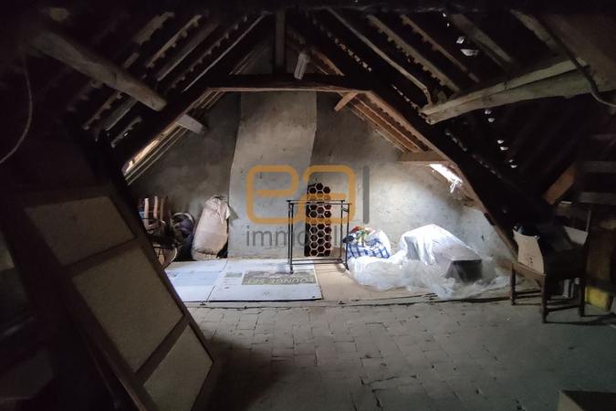 À l’étage, l’espace nuit se compose de deux chambres, d’une pièce dressing et d’une salle d’eau. Un escalier mène au grenier, aujourd’hui non aménagé, laissant entrevoir de belles possibilités d’évolution selon les envies et les projets.