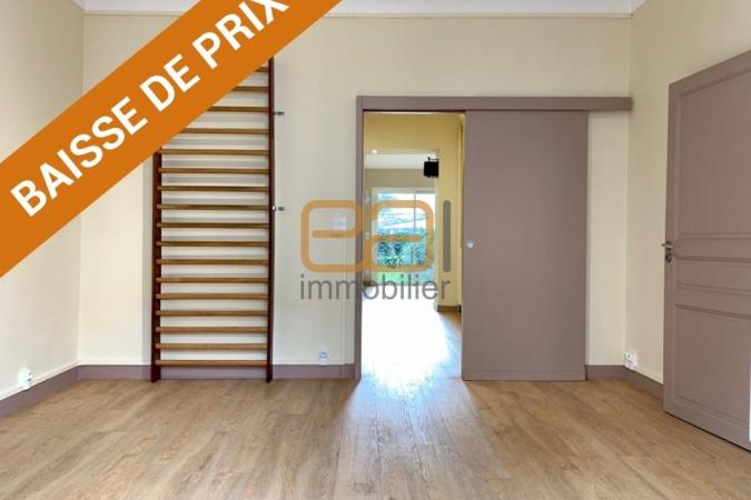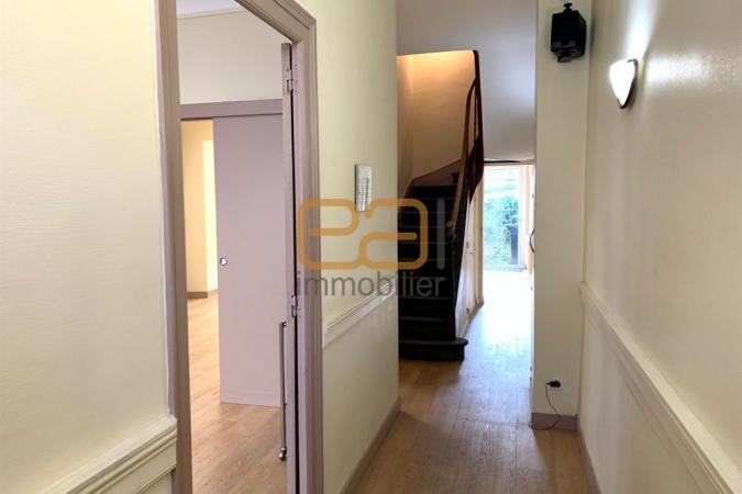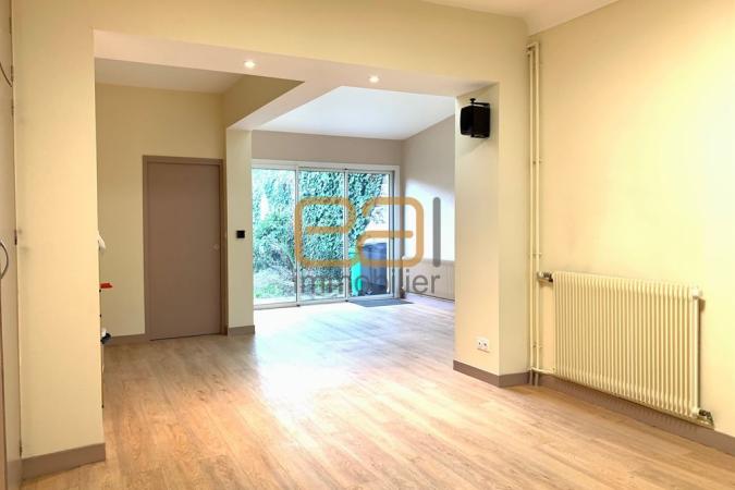 Maison située dans une rue calme qui se compose d’un vaste rez-de-chaussée d’une superficie de 64m² environ à aménager à sa convenance (le bien est aujourd’hui utilisé comme cabinet d’une activité libérale). Possibilité d’y faire une chambre de plain-pied, ce niveau est également doté d’une salle d’eau avec WC. Une grande baie vitrée donne sur le jardin.
