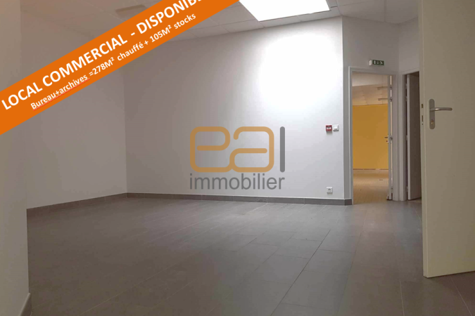 Le bâtiment est à usage de local commercial, disponible et bon état général, composé d'une entrée avec accueil, 4 bureaux, un coin cuisine, salle d'eau et sanitaires avec douche. Une zone servant de stockage + pièce d'archives. (278m² chauffé et 365m² sur son intégralité).