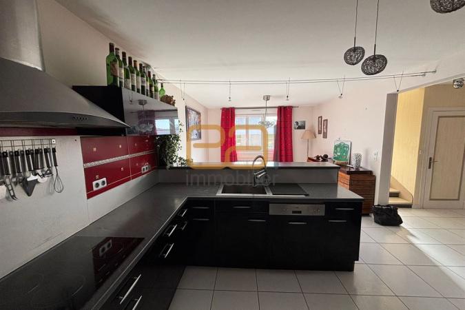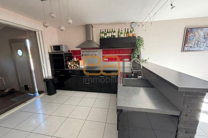 L'espace de vie a été pensé pour le partage et la lumière. Le vaste salon-séjour, avec sa cuisine américaine entièrement équipée, constitue le cœur de la maison. Atout majeur de ce bien : le salon s'ouvre de plain-pied sur l'espace piscine, créant une transition naturelle entre l'intérieur et l'extérieur pour vos journées d'été. L'entrée, particulièrement accueillante, a été aménagée pour servir de coin bar convivial. Le rez-de-chaussée dispose également d'une salle d'eau avec wc.